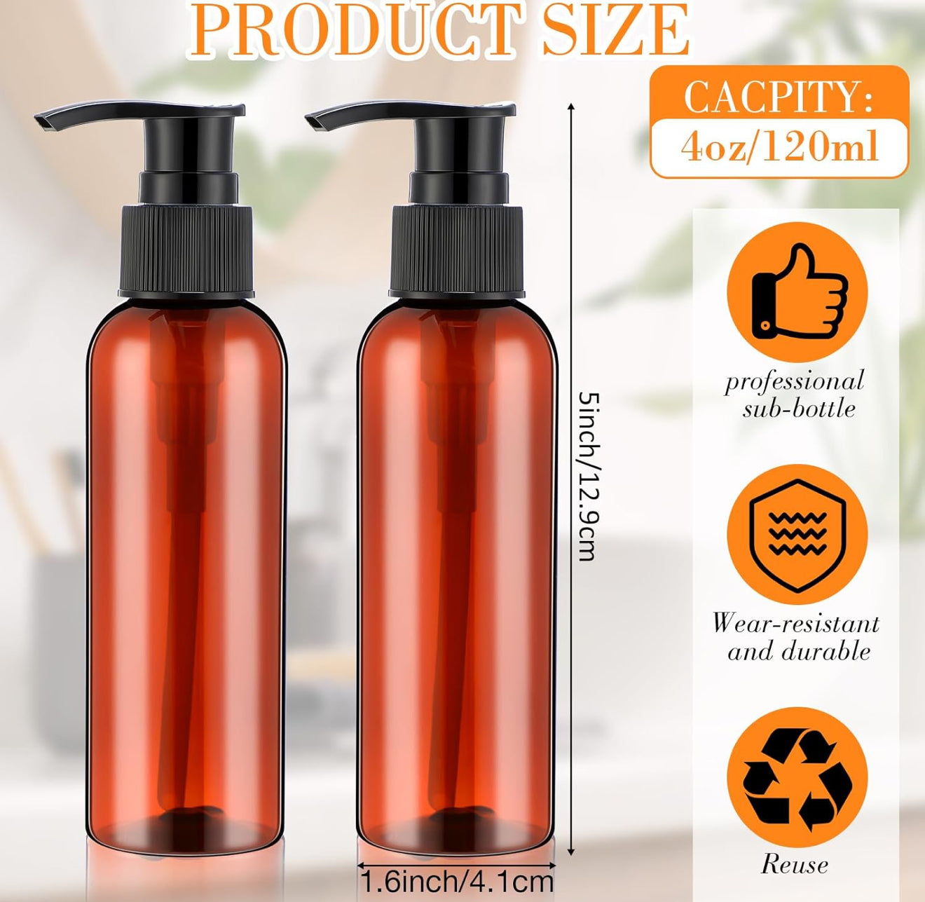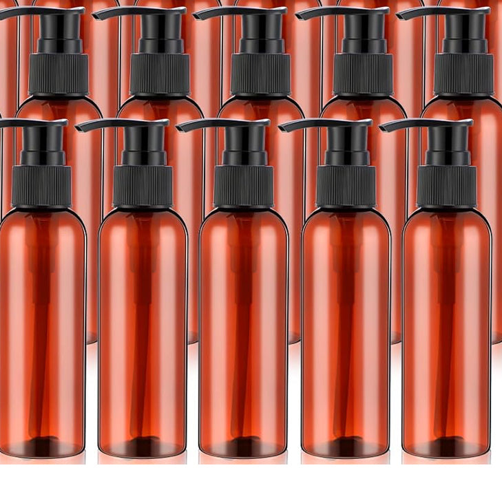 4 oz Amber Bullet Bottles w/Black Plastic Pump Caps (10 PCS)